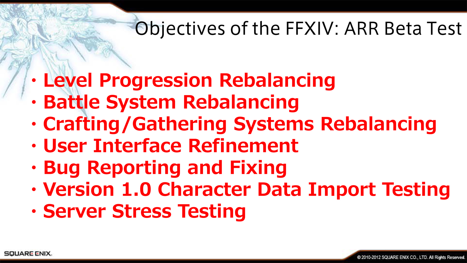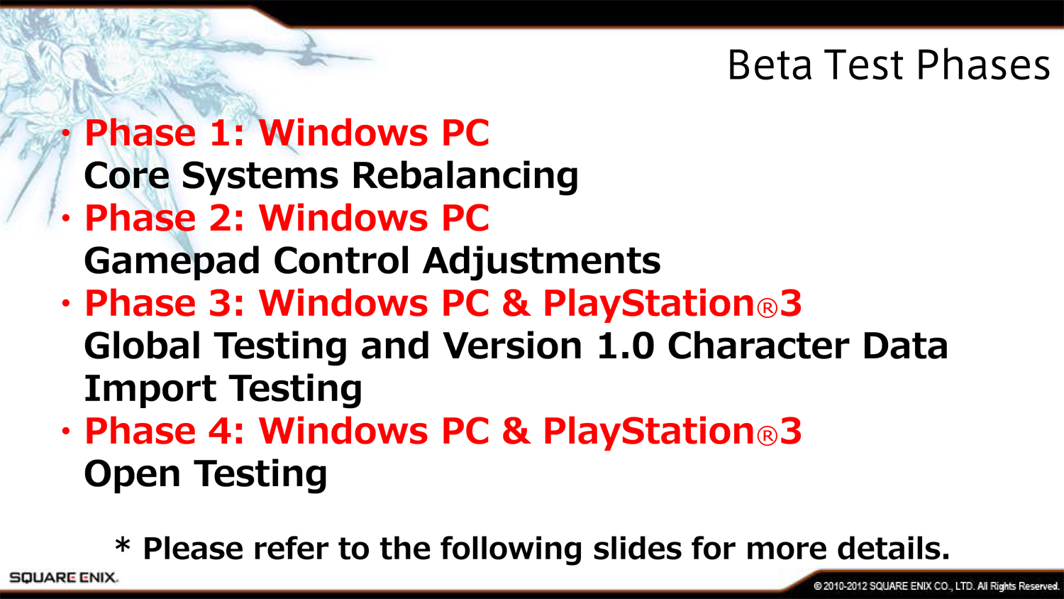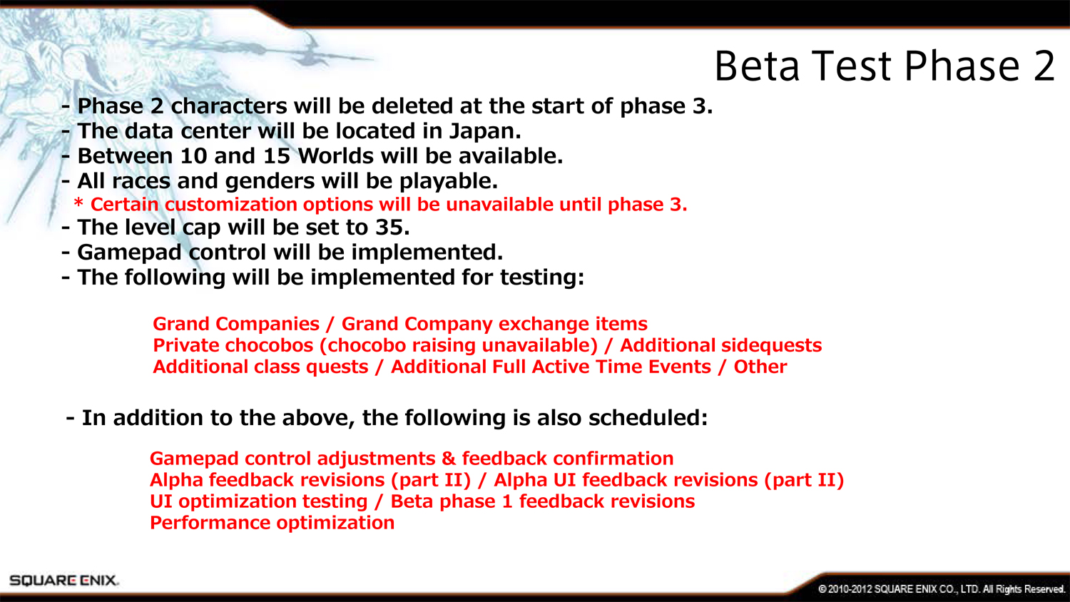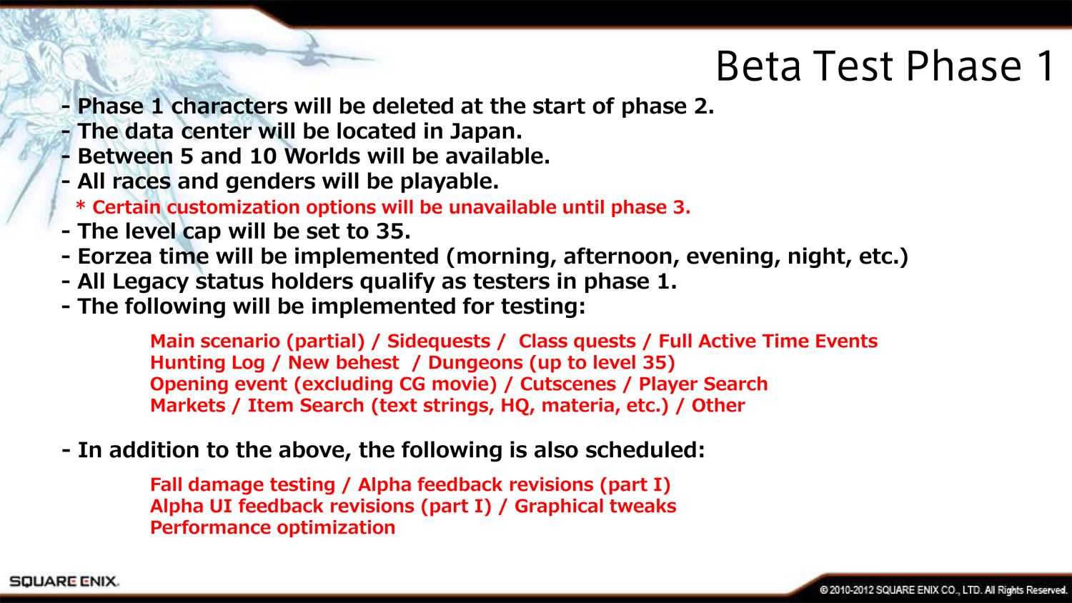 Первая фаза бета-теста будет закрытой, а принять в ней участие смогут только самые преданные поклонники Square Enix. Этот этап продлится 2-4 недели и проверит нагрузку на сервера компании.