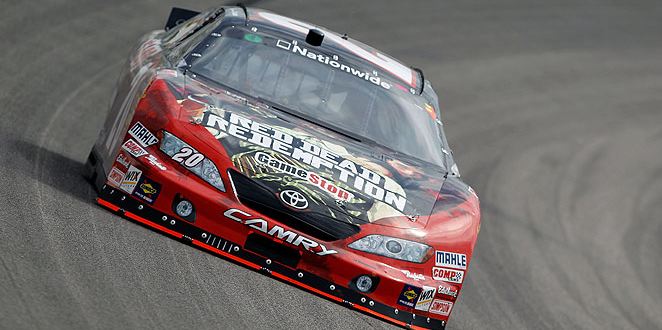 GameStop продолжает спонсировать гонщика NASCAR Joey Logano #20 на Toyota Camry в Общенациональной Серии гонок. В эти выходные с Red Dead Redemption покраской. Предстоящая игра от создателя Grand Theft Auto, кажется принесет Logano чуточку удачи. А белой вороной на дороге он не будет точно. Вообщем, Red Dead Redemption от Rockstars, который открывает нам прелести дикого запада начала 1900-х, наступает по всем направлением.