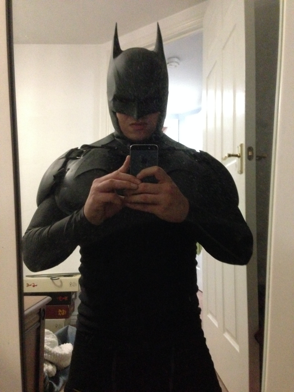 Стиви говорит, что он лично проектировал и подбирал размер брони, а потом отправлял файлы в Tundra Designs, и по частям получал свой костюм. Позже он красил его, и при этом он использовал несколько иные цвета, чтобы костюм выглядел как скин Темного Рыцаря.