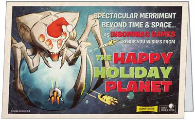 До нового года остался всего один день, а разработчики все продолжают радовать нас поздравительными открытками. Сегодня отличились Insomniac Games опубликовав сразу пять открыток, на которых персонажи главных франчайзов IG поздравляют нас с праздниками. На открытках мы можем увидеть химер из серии Resistance и Рэтчета с Кланком из одноименной серии.