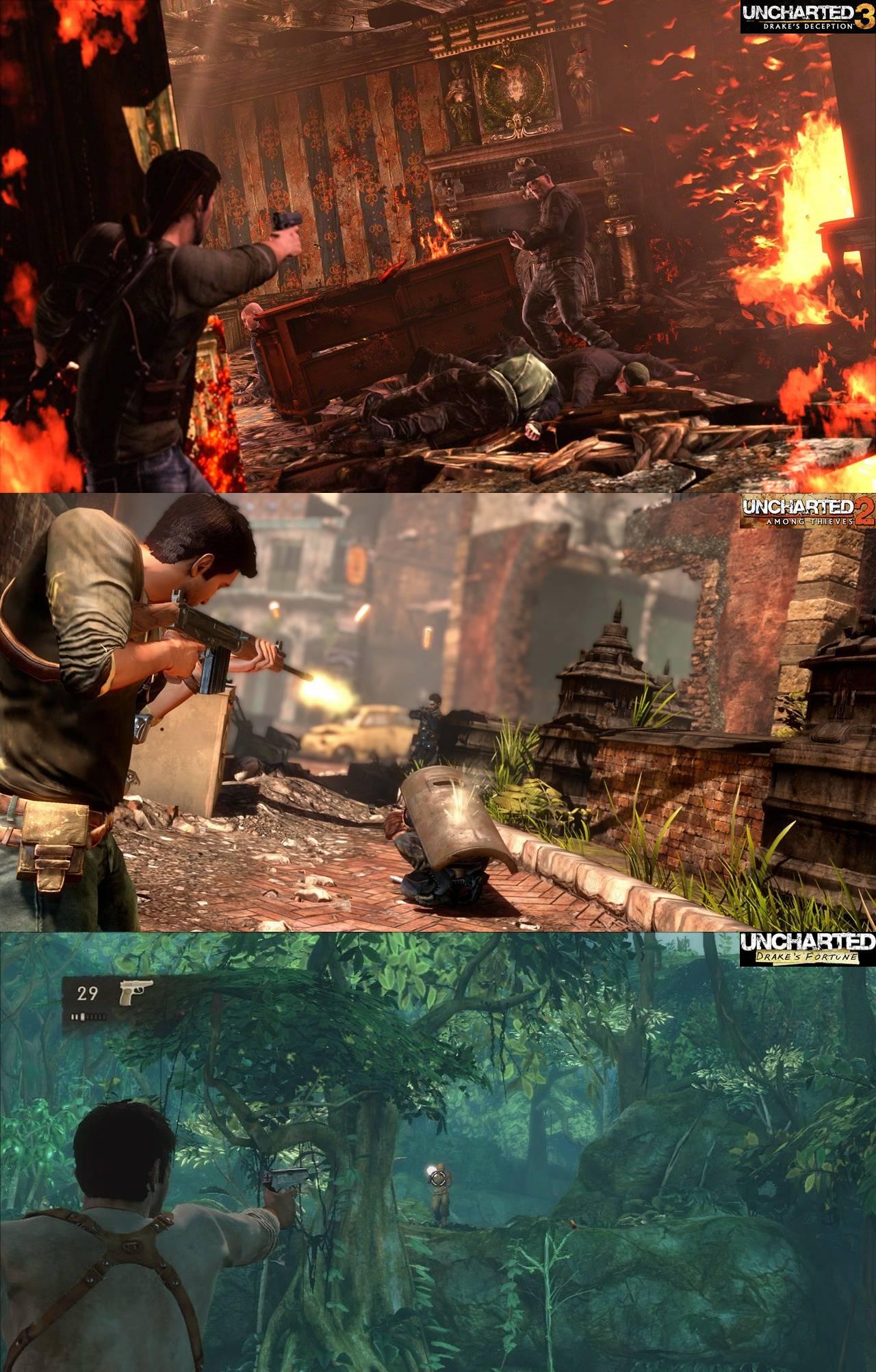 Ребята с веб-сайта gamingbolt решили в очередной раз установить, насколько хорошо работают Naugthy Dog, и как далеко в визуальном плане ушли сиквел и триквел от оригинального Uncharted.