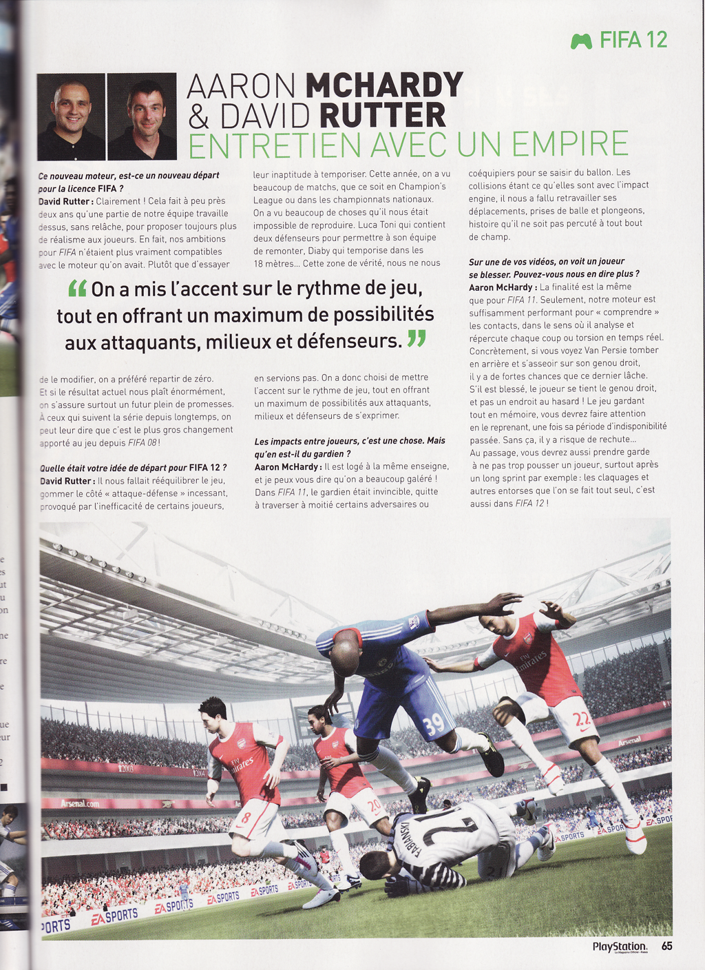 Во-первых, стоит начать с того, что FIFA 12 создается на базе совершенно нового движка Impact Engine, отличительной особенностью которого является правдоподобное формирование модели взаимодействия игроков друг с другом.