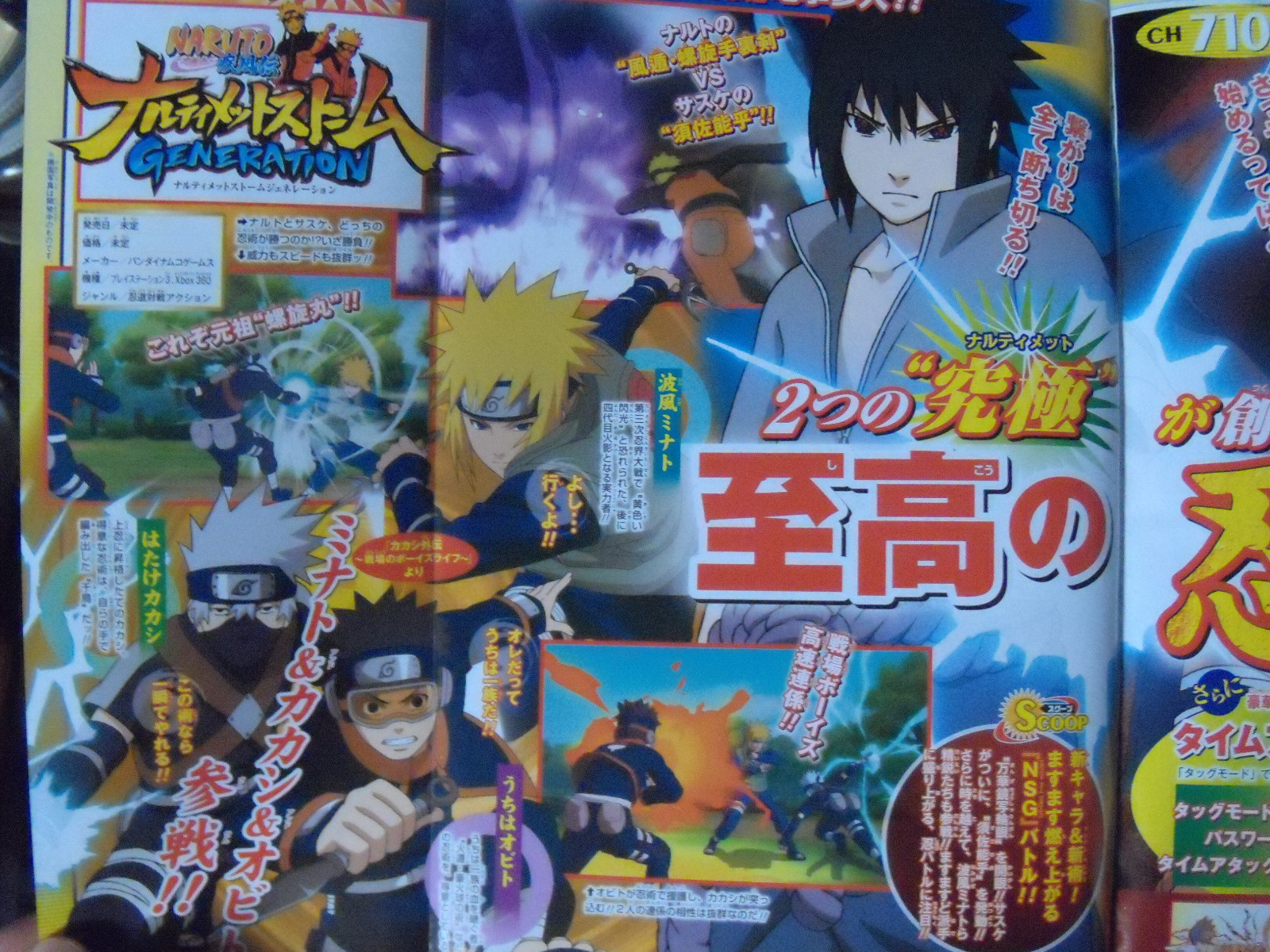 Молодой Какаши (Young Kakashi), Минато (Minato) и Обито (Obito) подтверждены как игровые персонажи для промежуточной части Naruto Shippuden: Ultimate Ninja Storm Generations. Дабы удостовериться в этой информации, Shonen Jump предоставил нам новый скан, на котором запечатлены эти самые персонажи из главы “Хроники Какаши”. Будут ли данные персонажи доступны только в виде команды поддержки, либо как полноценные игровые персонажи, пока точно сказать нельзя, однако, судя по скану, поиграть за них мы точно сможем.