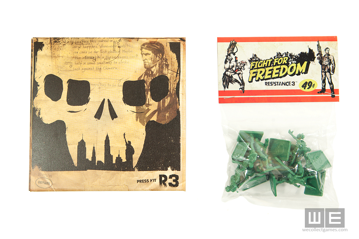 На просторах всемирной паутины, а точнее на сайте WE Collect Games, появились фотографии, демонстрирующие нам два ограниченных издания нового эксклюзивного проекта от Insomniac Games – Resistance 3: Survivor Edition и Press Kit. Хоть ждать осталось совсем недолго, так как выход игры запланирован на 9 сентября, но у многих уже возникает желание приобрести данный набор, поэтому не мешало бы напомнить составы данных изданий.