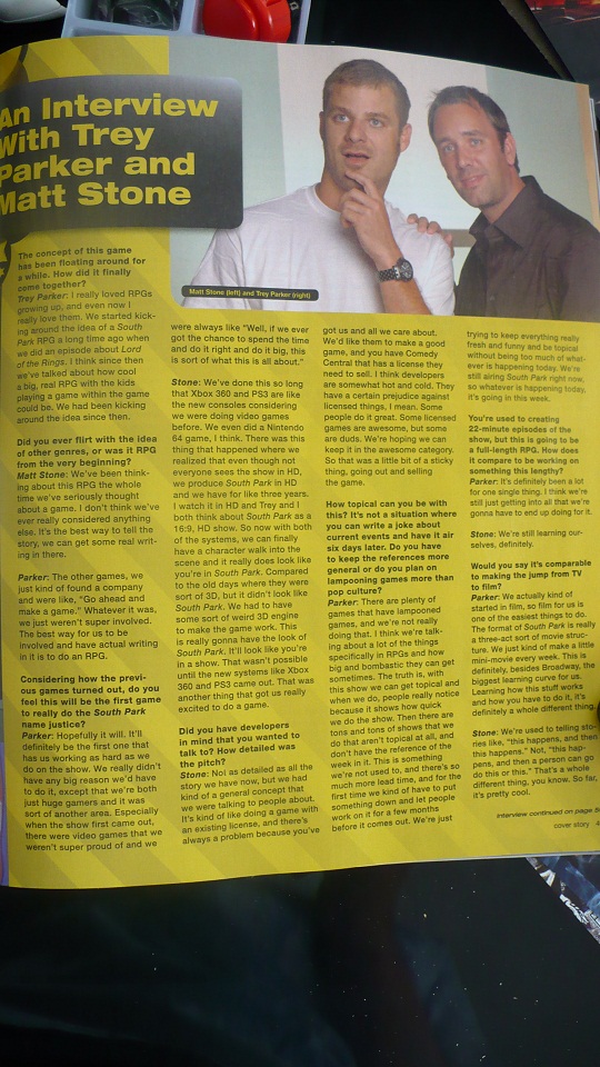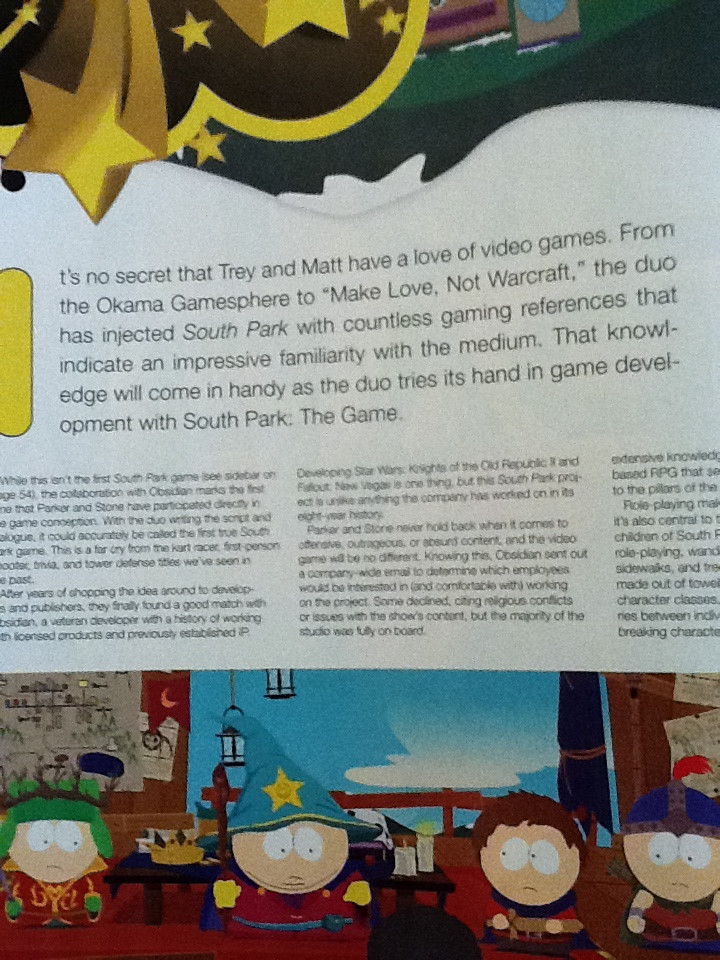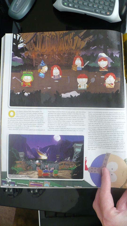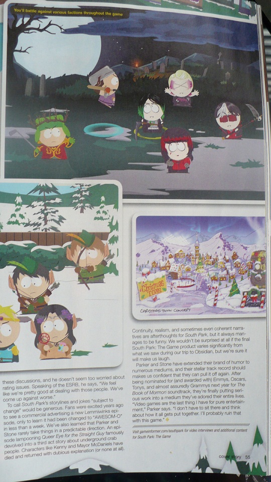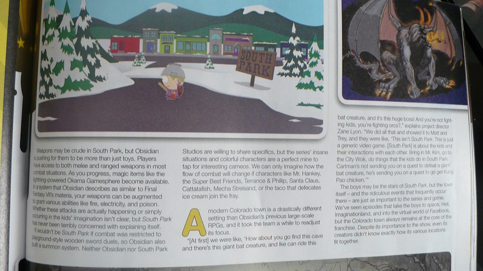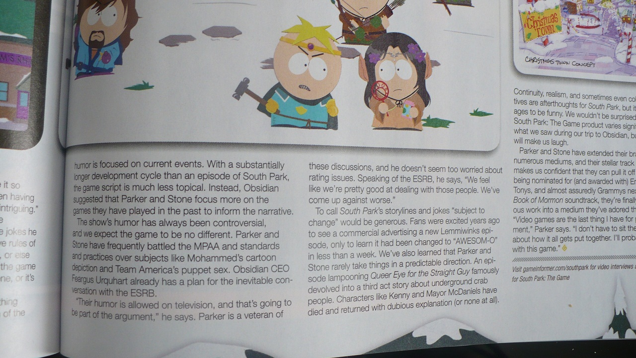 Во всемирной паутине спустя практически неделю после досконального изучения первых деталей RPG по замечательному американскому мультсериалу South Park, появились первые сканы того самого свежего номера журнала GameInformer, из которого мы и смогли узнать всю эту интереснейшую информацию о совместном проекте THQ и Obsidian.
