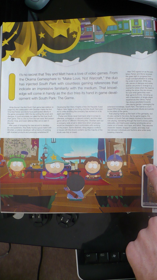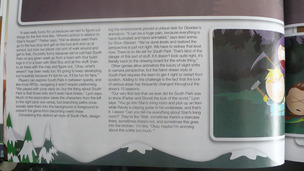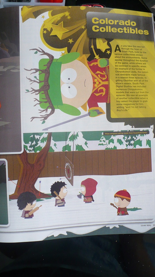 На данных сканах помимо всей той информации, которая была рассказана о South Park: The Game чуть раньше, мы можем наблюдать несколько игровых моментов (скриншотов), демонстрирующих боевые сцены, а также арты, зарисовки и многое другое.