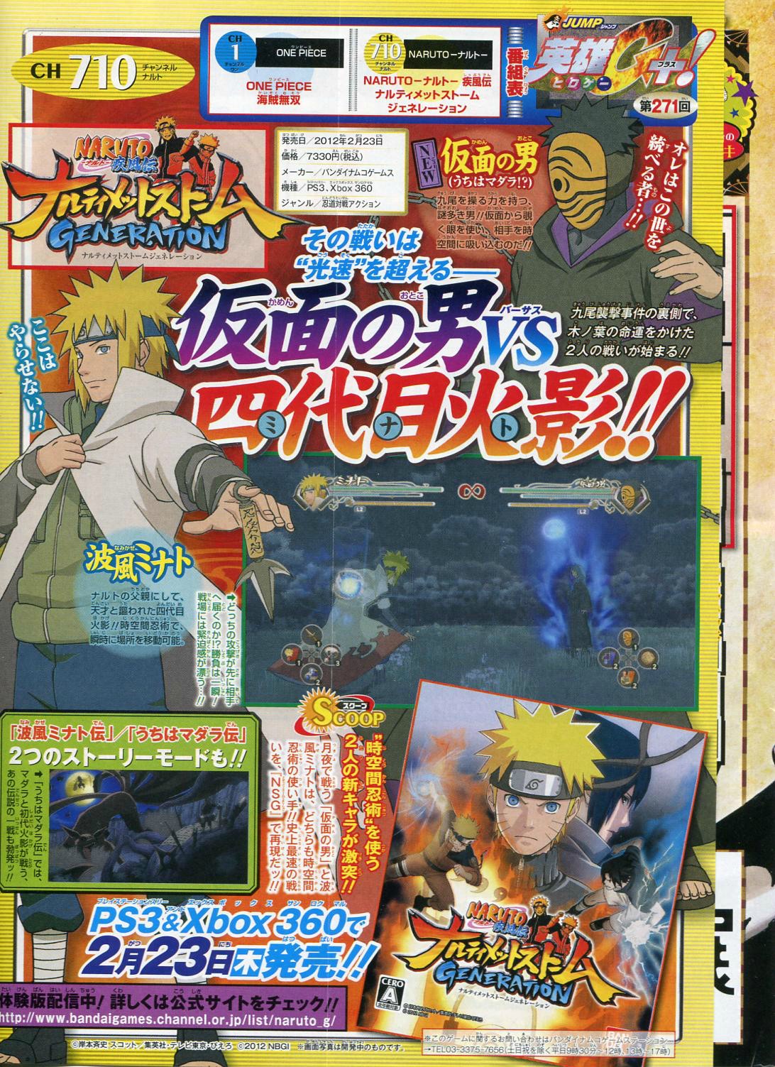В первую очередь хотелось бы заметить, что на данных выставках были продемонстрированы не все бойцы, потому как заявлено было 75 игровых персонажей, а показали лишь 70, то есть в скором времени нас ожидает анонс еще 3. Почему троих? На этот вопрос легко ответит новый скан из свежего номера японского журнала Shonen Jump, демонстрирующий нам 4-го Хокаге и Серьезного Тоби (известного как Учиха Мадара) в качестве игровых персонажей.