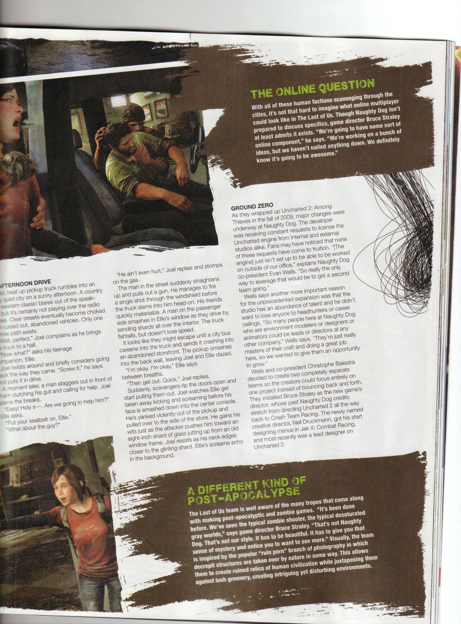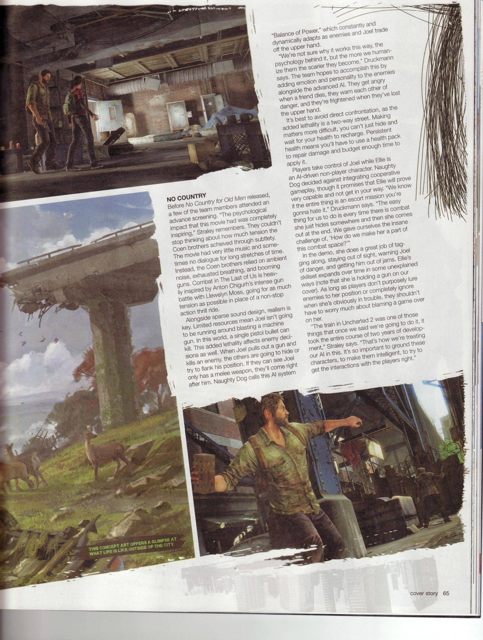 – “Мы знаем, что если мы сделаем тупые эскорт-миссии, то вы возненавидете наш новый проект. Конечно, самым легким способом стало бы, когда каждый раз во время боевых сцен Элли просто пряталась где-нибудь в углу, а затем выходила в конце. Мы же поставили себе безумную цель: “Как мы можем сделать ее частью боевого пространства?”