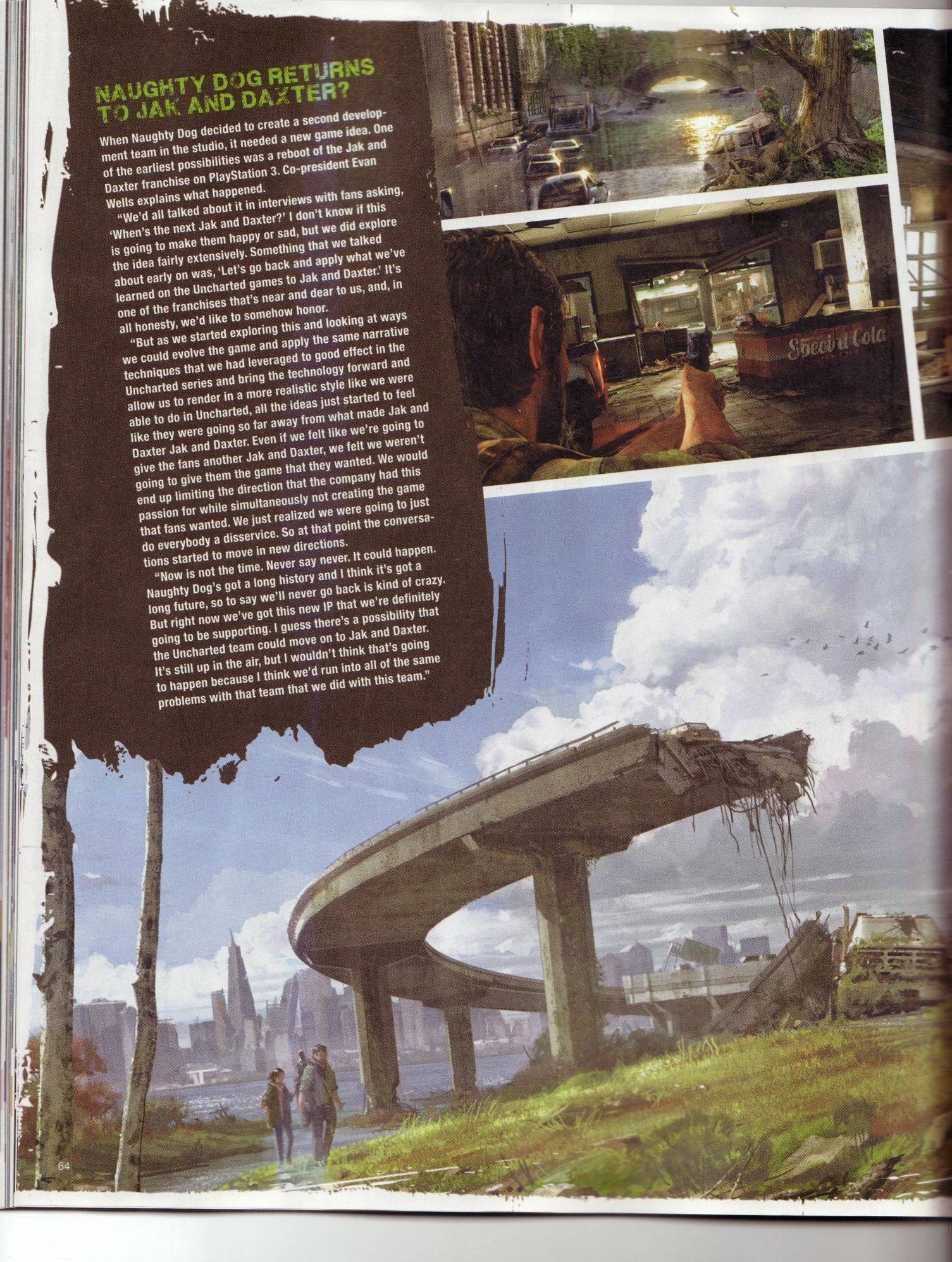 – Уэллс: “В Naughty Dog трудиться огромное количество людей, занимающих такие должности, как модельер, дизайнер, аниматор, которые с тем же успехом могли занимать более высокие должности в других студиях или даже быть директорами в любой компании. Они действительно мастера своего дела, и своим трудом вносят огромный вклад в нашу работу, поэтому мы хотим дать им возможность расти дальше“.