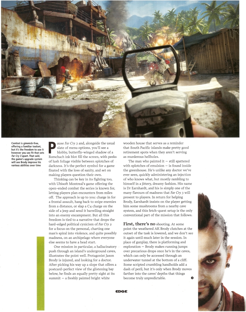 Во всемирной паутине появились новые подробности о Far Cry 3, прибывшие до наших глаз и ушей из последнего номера известного зарубежного журнала EDGE. Сегодня мы узнаем много полезной новой информации о некоторых сюжетных миссиях, персонажах, особенностях геймплея Far Cry 3 и многих других деталях, поэтому возможны спойлеры: