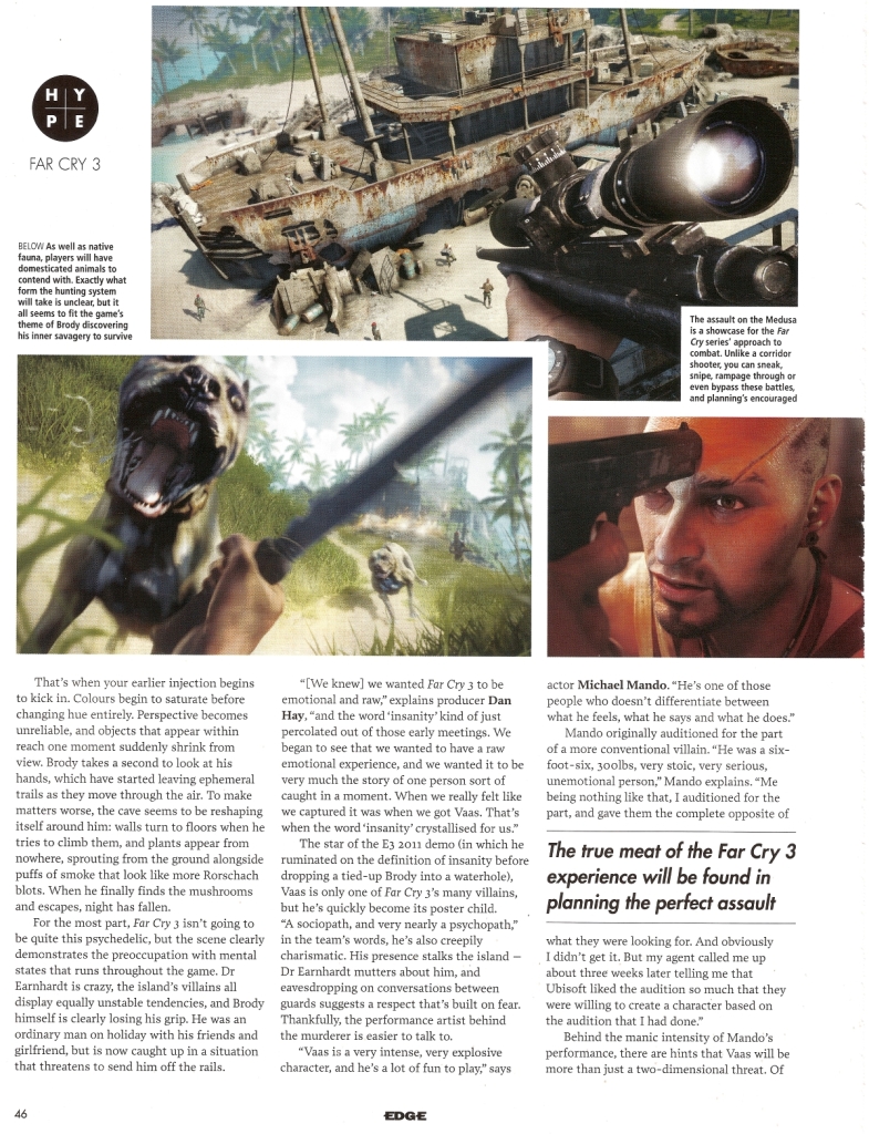 – “В Far Cry 3 не будет изобиловать психоделика, но данная сюжетная сцена наглядно демонстрирует психическое состояние героя, которое будет проявляться на протяжении всей игры“;